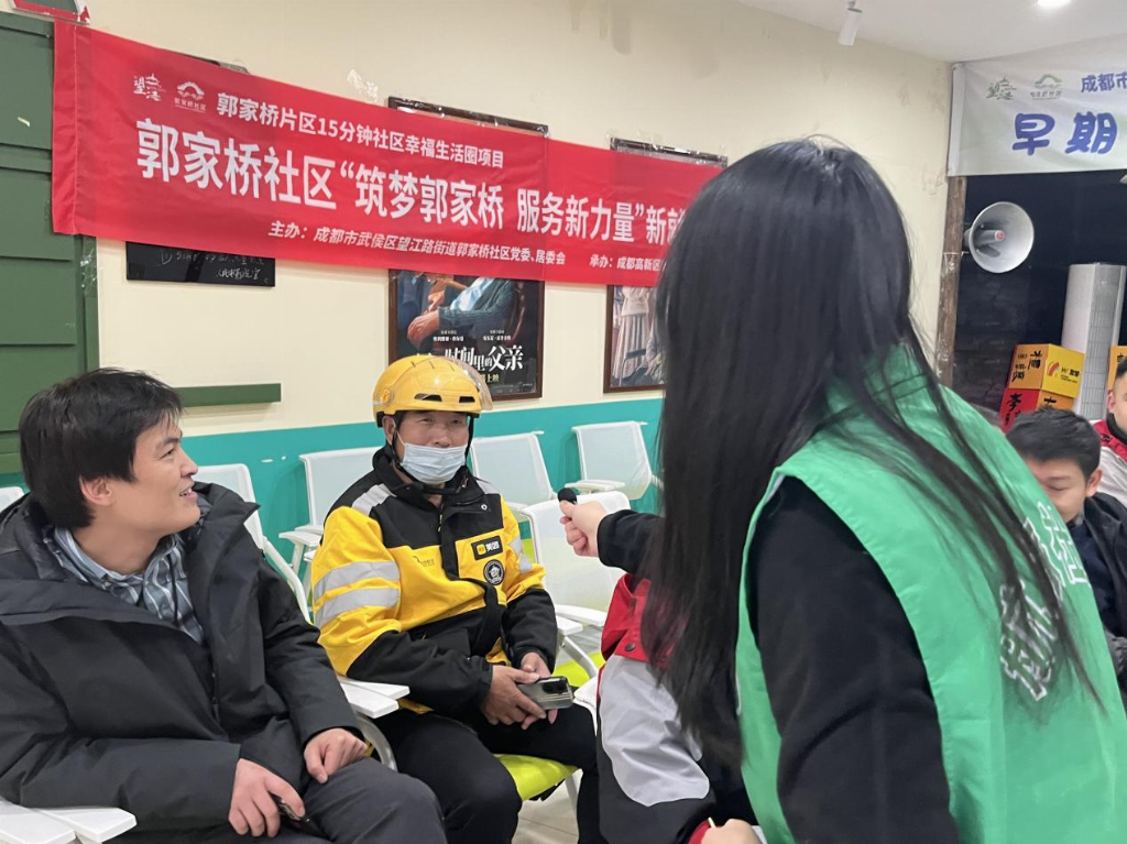 在城市的大街小巷,总有这样一群人:他们风雨无阻,穿梭于楼宇之间;他们步履不停,连接着千家万户的需求与期待。他们是快递员、外卖员,是城市运转中不可或缺的“新力量”,也是“15分钟社区幸福生活圈”中不可或缺的温情纽带。2025年11月20日,一场名为“筑梦郭家桥 服务新力量”的新就业群体关爱活动,在成都市武侯区望江路街道郭家桥社区温情上演。本次活动由郭家桥社区党委、居委会主办,成都高新区航旅社会工作服务中心承办,旨在走近这些城市“赶路人”,倾听他们的声音,传递社区的温暖。活动共吸引50名新就业群体参与,成为冬日里一抹温暖的亮色。